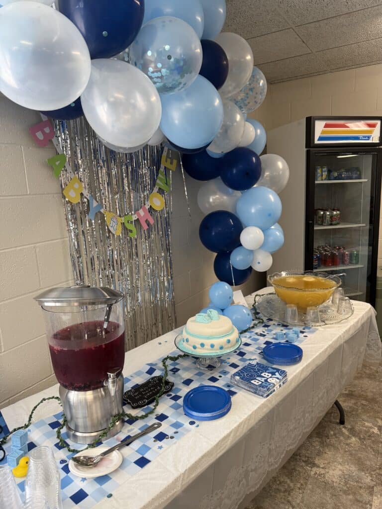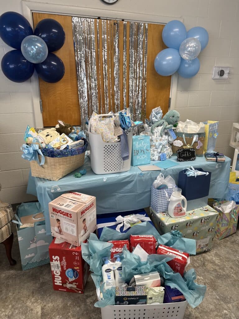 On Saturday, September 13, St. John UMC began it’s welcome of Baby Boy Toney with a Baby Shower! We had balloons, food galore, CAKE with booties, cupcakes and punch. There were enough baby gifts to fill the back of Pastor Chris and Monica’s car so that Pastor Chris could not see out the rear view mirror. I think they are now ready for their sweet baby boy!